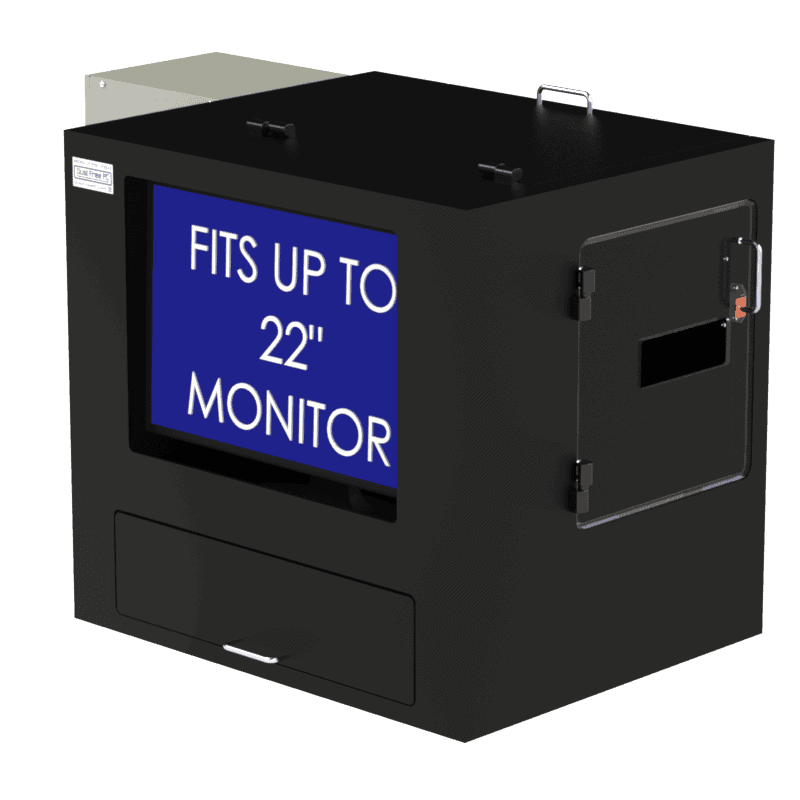 The DFP200MKS-BP-PF series of air-conditioned computer workstations act like a tabletop climate controlled clean-room keeping airborne debris, humidity and HIGH temperatures from damaging your mission critical computer hardware. NEMA 12, 4 and 4X air conditioners are available for your specific environmental need. The workstation comes with a 2,200Btu, 115VAC indoor rated air conditioner. The DFP200MKS-BP-PF series is one of our most versatile computer workstations and can be used as a tabletop unit or stand-alone mobile workstation. It can be built for any barcode printer. Monitor sizes from 19″ up to 27″, custom options available too. Our industrial tough ABS construction works great with wireless networks.