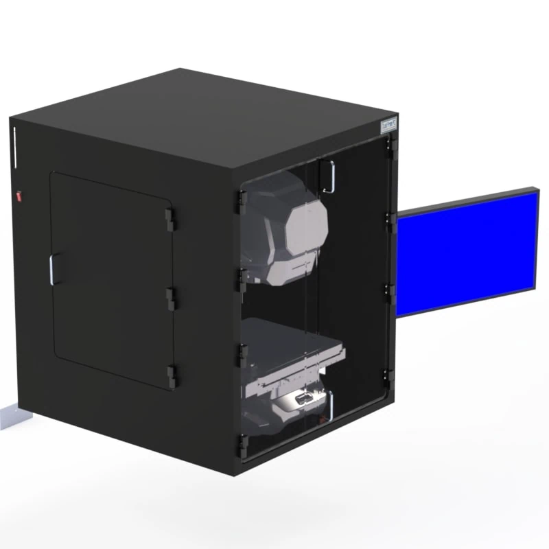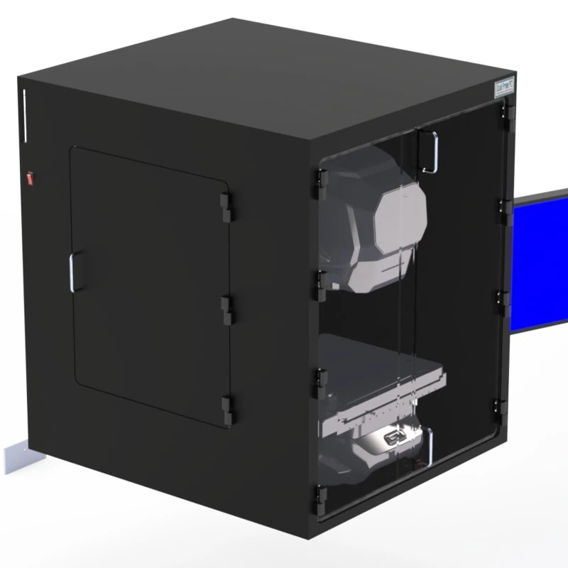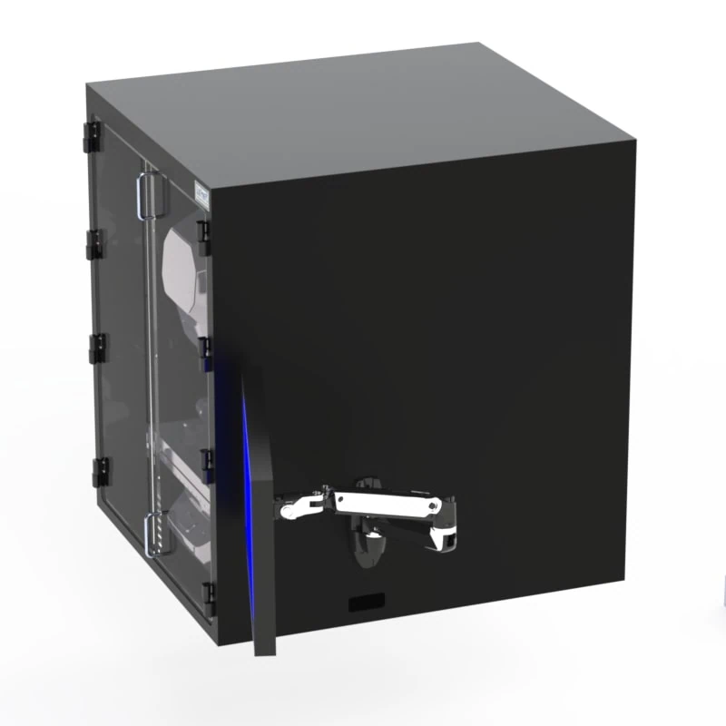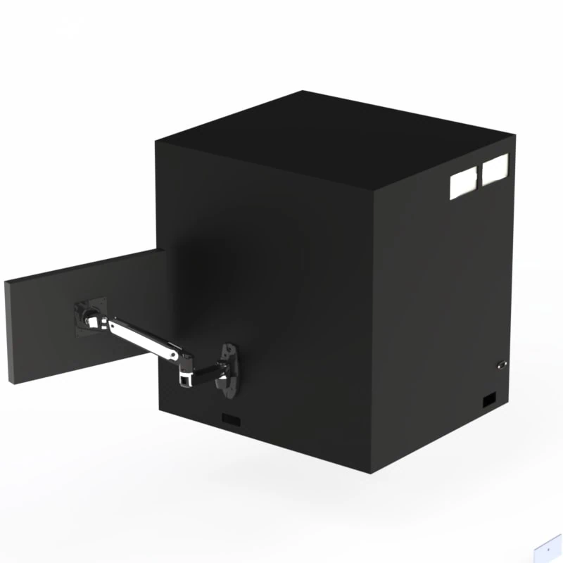 This tabletop enclosure works for the IM-X1220 & the IM-x1330 Stage. You can install either the IM or LM Camera Head on the stage. There is an articulating monitor arm mounted on the right side of the enclosure that can hold up to a 30″ monitor. Dual fan/filter system keeps the enclosure under positive pressure. Large front double door provides easy access to the imager stage. Front doors open from the center and are hinged on the sides. There is a large side door for access to the controller PC and left side of the stage where the connection is for the head to stage wiring. Brush covered cable port for monitor cables.